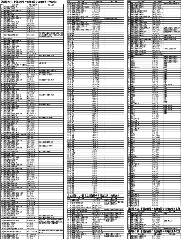 中国农业银行股份有限公司海南省分行营业部、海口南航支行、海口金贸支行、海口海秀支行债权联合催收公告
