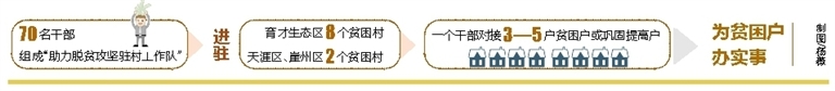 今天是工作队队员驻村工作的第二天,也是70名队员与当地贫困户同吃同住的第二天。513户、2280名贫困户和巩固提高户的致贫原因、扶贫政策落实情况等他们都逐个摸底、牢记于心。为让贫困户尽快摘掉穷帽子,队员们“八仙过海,各显神通”。