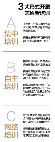 有关负责人介绍,在省文明委的领导下,为不断推进海南志愿服务常态化发展,让志愿服务更制度化、专业化、项目化,全省志愿服务工作依托“志愿海南”等平台,不断扩大志愿者队伍组织和志愿服务阵地覆盖面,并以服务需求为抓手,加大项目培育力度,提升志愿服务水平。
