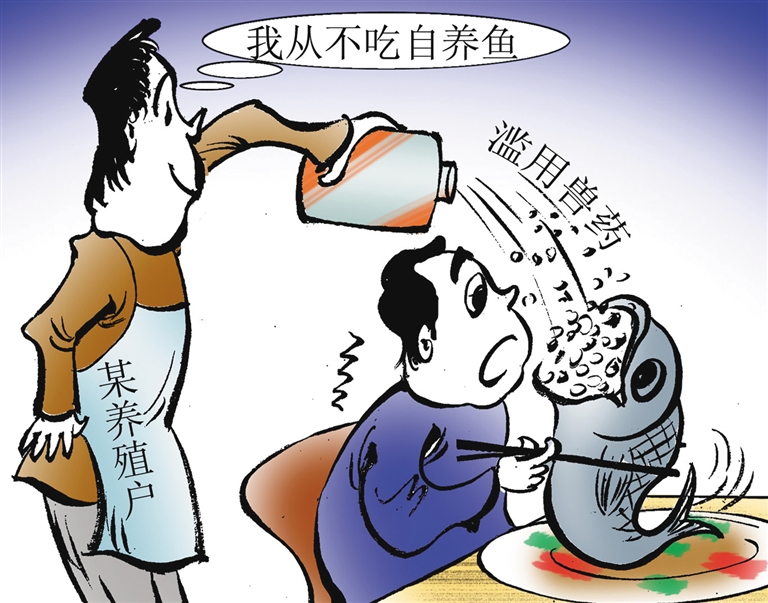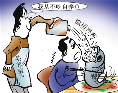 养殖户不吃自养鱼,多具讽刺意味!为何不吃,是不敢吃,因为用药过度,对人有害,不难看出,养殖户具有很强的安全意识。然而,自己都不敢吃的东西,养殖户倒是敢大批大批地卖给别人吃,难道就不怕别人的身体吃出了毛病、吃出了问题。再转念一想,我们在痛骂养殖户良心“大大的坏”的同时,不免纳闷,农残超标如此严重的大批活鱼何以能堂而皇之地进入批发市场?这只能说明该地的食品安全监管出了问题。这正是: