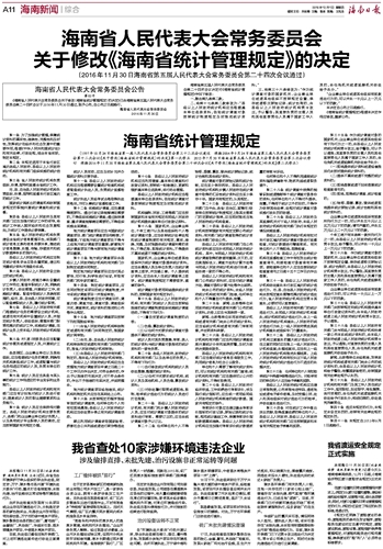 海南省人民代表大会常务委员会 关于修改《海南省统计管理规定》的决定