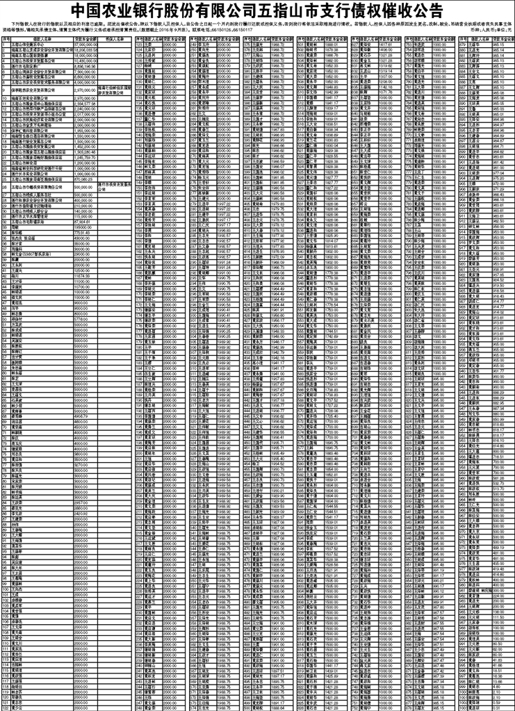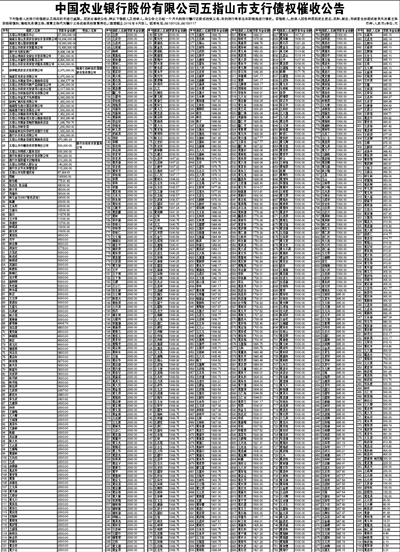 中国农业银行股份有限公司五指山市支行债权催收公告
