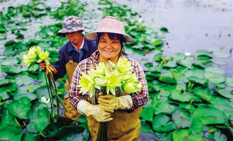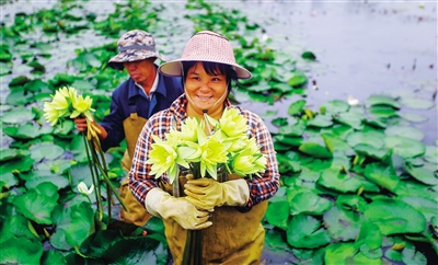 据了解,红旗镇将致力于打造以花卉为产业的特色风情小镇。目前该基地睡莲种植面积达500亩,每天销售额5000元左右,年产值可达200万元。现随着旅游等配套设施的建设完善,这里将打造一个集睡莲种植、繁育、衍生品加工、休闲旅游和禅修度假为一体的水莲花综合开发基地。本报记者 张茂 摄