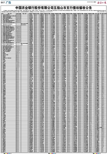 中国农业银行股份有限公司五指山市支行债权催收公告