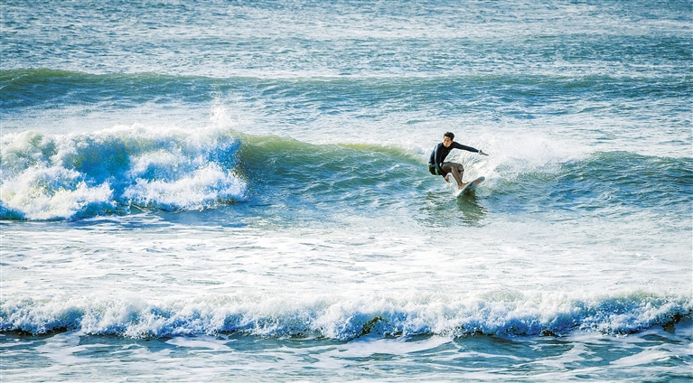 12月2日,万宁日月湾,来自世界各地的选手享受冲浪运动。据了解,2日-12日,2016年海南万宁国际冲浪赛将在此举行。 本报记者 袁琛 摄