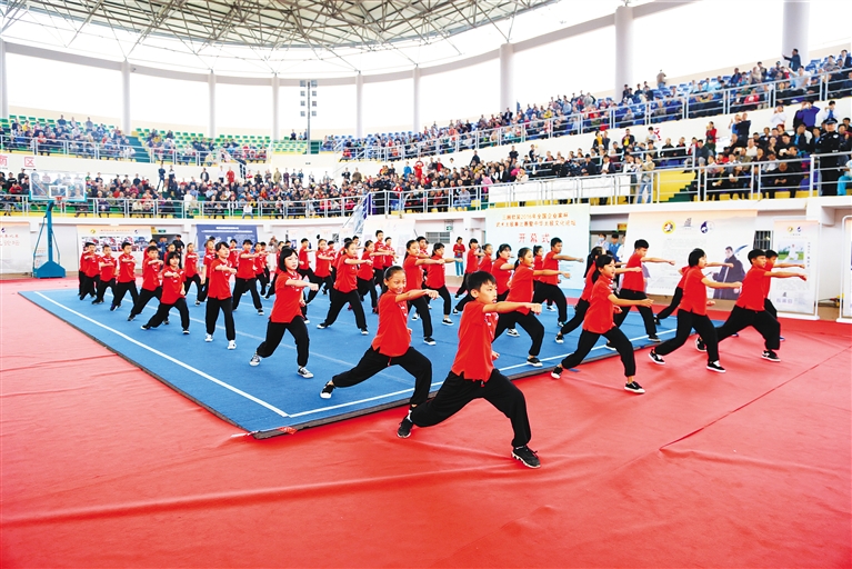 省武术协会副会长徐永庆衣袂翩飞,一把春秋大刀耍得出神入化;吉尼斯记录保持者李宗贵手持1.84米长剑,舞得虎虎生风,直教人拍掌叫好……开幕式上,众多太极名家轮番上阵,为观众带来拳术、功夫扇、太极剑等精彩表演,招招式式舞得风生水起。