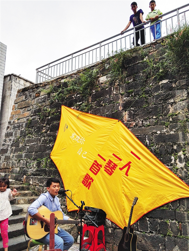 11月的一天下午,海口府城鼓楼下的一个小院举办了一场主题为“一人一琴一首歌——发现你自己”的民间原创音乐会。说是“小院”,其实是鼓楼左侧阶梯巷道的弹丸之地,一处只能挤下二三十人的狭小空间。可就在这里,奏响了流行音乐的黄钟大吕。