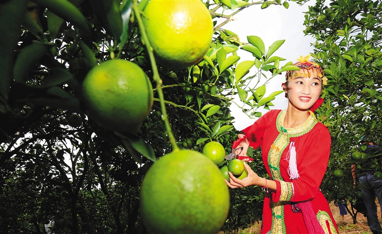 琼中绿橙价格一路攀升,基地的果农大获丰收,他们笑了。