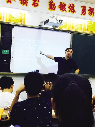 热情洋溢的讲述,打动了全体同学。在一片热烈的掌声和同学们意犹未尽的目光中,作为山寨老师的我总算放下一颗高悬的心,结束了惊心动魄的“人生第一课”。走下讲台,不经意间发现,自己已是大汗淋漓,身上的T恤已经可以拧出水来。