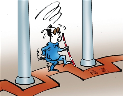 盲道是便于盲人独立出行的重要辅助手段,对盲人朋友无障碍出行意义非凡。设置盲道的初衷既然是为了便利盲人出行,又为何在实际建设中人为设置“路障”,给盲人制造不便和不安全因素。给不便者以方便是对弱势群体最起码的尊重,盲道出现设计不合理、被堵塞或占用等现象,归根结底还是“盲道优先”、“弱者优先”的原则没有得以贯彻,相关建设及规划单位对弱者的尊重还不够,对少数人需求的重视还不够,没有真正从弱者的角度去关怀、体谅他们。这正是: