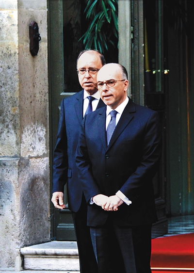 12月6日,法国总统奥朗德任命内政部长贝尔纳·卡泽纳夫出任新政府总理,以接替即将参加明年总统选举竞选的前总理曼努埃尔·瓦尔斯。 这是2015年1月11日在法国巴黎拍摄的卡泽纳夫(前)的资料照片。新华社发