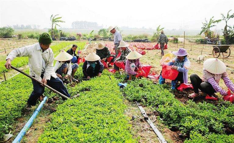 今年8月,东方市大田镇保丁村65户贫困户,在东方市园林局、统计局等4家单位帮扶下,成立了苗木种植专业合作社,确定花卉苗木种植作为该村的产业扶贫项目,种植了18.7亩的龙船花、蔓花生、黄金榕等品种的苗木花卉。东方市园林局根据市场需求,给合作社下订单,负责包销。预计年产值可达180万元,为贫困人口每人每年增收6000多元。 本报记者 苏晓杰 特约记者 高智 摄