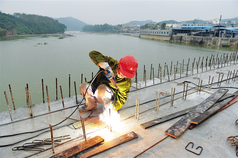 12月2日,琼中黎族苗族自治县和平镇乘坡大桥正在加紧建设,预计元旦前能实现功能性通车。地处中部山区的堑对村是贫困村,其生态资源丰富却因交通不便发展缓慢。在省委办公厅的协调推动下,连接该村的大桥从今年3月份开工建设,随着投资1100多万元的大桥即将竣工,堑对村近1700人的生产生活及安全出行难题将得到解决,同时也将带动当地旅游资源的开发与利用。