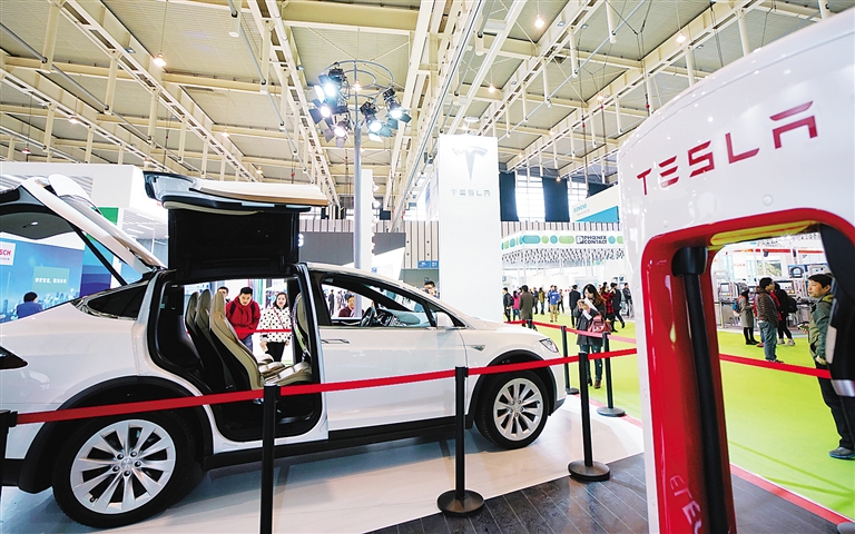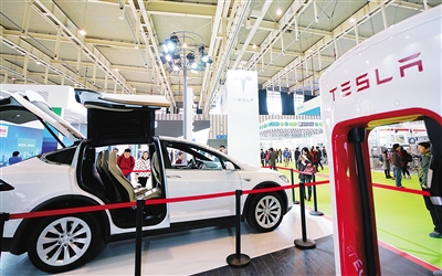 这是展会现场展出的一台特斯拉新能源汽车(12月6日摄)。 “让制造更聪明”为主题的2016世界智能制造大会于12月6日至8日在南京国际博览中心举行,共吸引来自国内外的285家企业参展。本次大会包括1个高峰论坛、8个专题论坛、1个世界智能制造展览会和8个专项活动,是全球智能制造领域一次大规模、国际性交流的研讨峰会。 新华社记者 季春鹏 摄