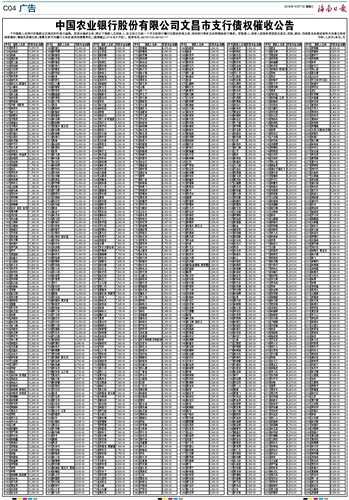 中国农业银行股份有限公司文昌市支行债权催收公告