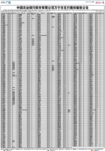 中国农业银行股份有限公司万宁市支行债权催收公告