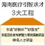 今年以来,我省前所未有地启动了三大工程为医疗发展引智求才,其中包括引进“好院长”“好医生”、京医百名老专家智力帮扶海南项目和候鸟人才项目。