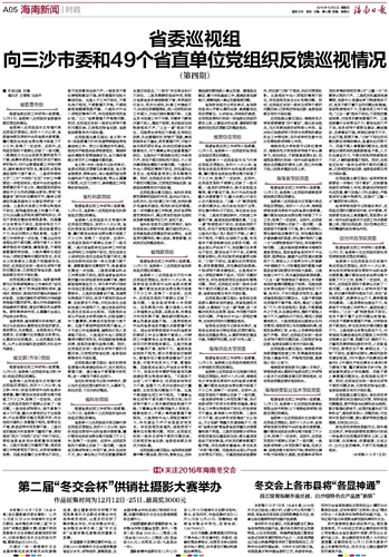 省委巡视组向三沙市委和49个省直单位党组织反馈巡视情况