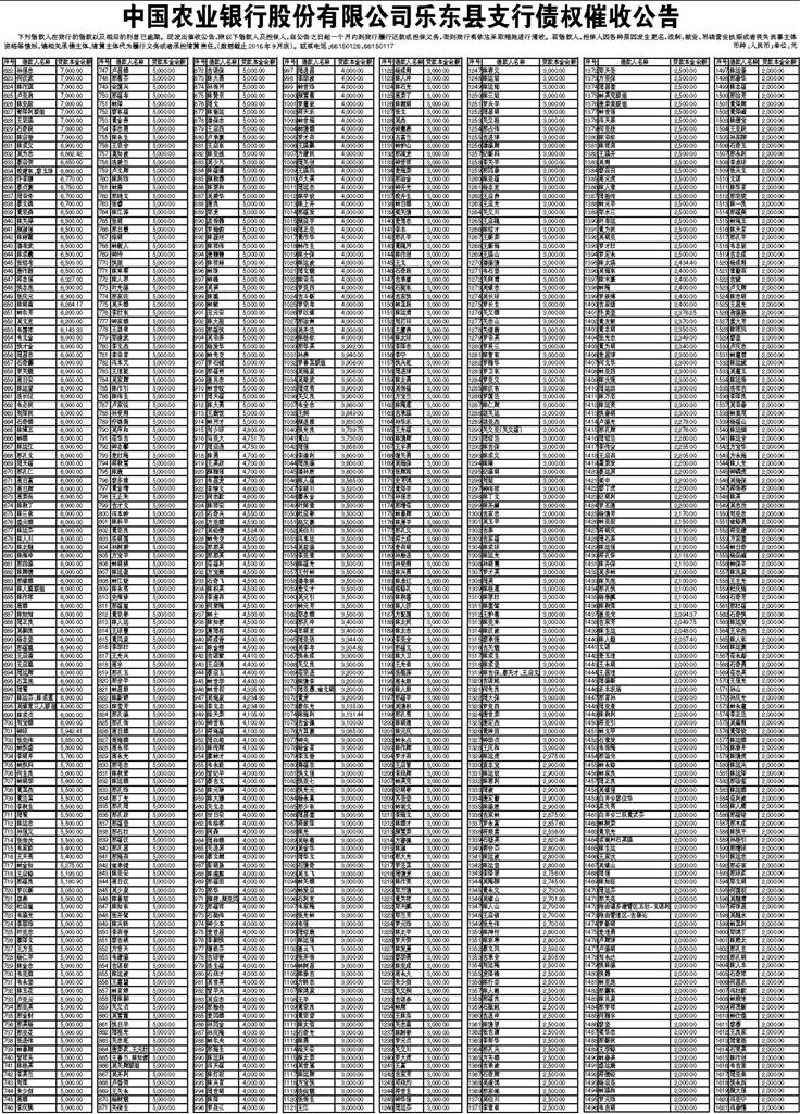 中国农业银行股份有限公司乐东县支行债权催收公告
