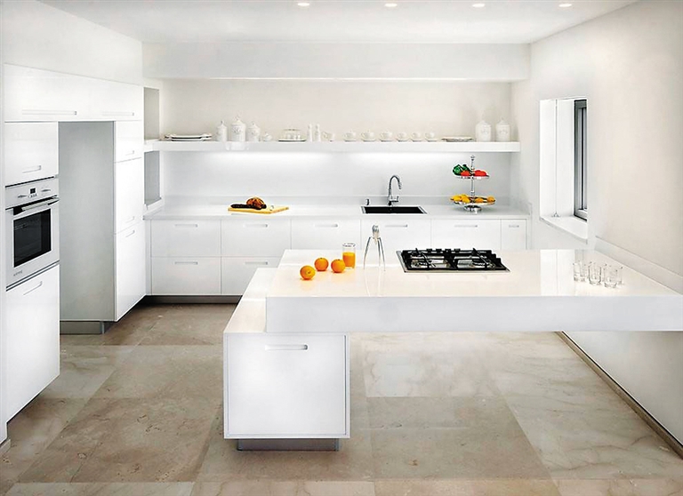 岛台设计能让厨房工作更加井然有序,可将清洗后的蔬菜瓜果放置在岛台,顺便加工处理,或可将岛台作为熟食专用台,这样可避免在同一张操作台上反复更换生熟菜板,生熟不分易造成交叉污染。