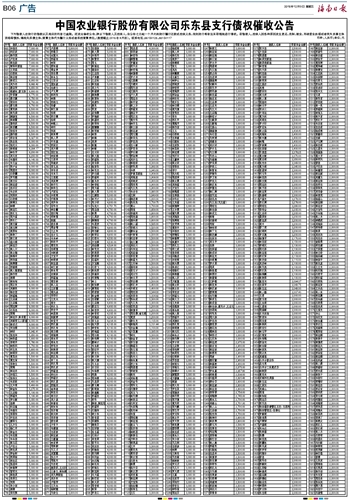 中国农业银行股份有限公司乐东县支行债权催收公告