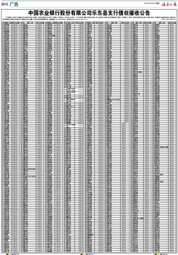 中国农业银行股份有限公司乐东县支行债权催收公告