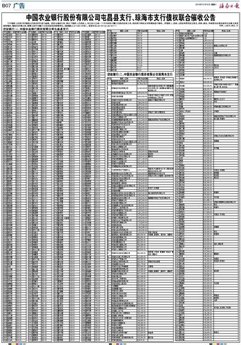 中国农业银行股份有限公司屯昌县支行、琼海市支行债权联合催收公告
