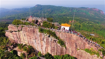 12月10日,众多市民游客登上琼海白石岭顶峰。近日,我省各地阳光明媚,气温宜人,海拔328米的白石岭景区引来了不少市民与游客登高健身,享受冬日暖阳,其中不乏北方“候鸟一族”。据悉,白石岭旅游区近日被批准为国家3A级旅游区。