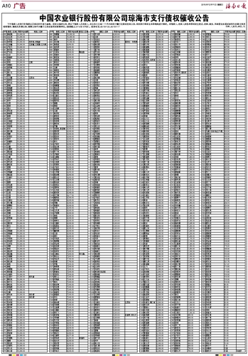 中国农业银行股份有限公司琼海市支行债权催收公告