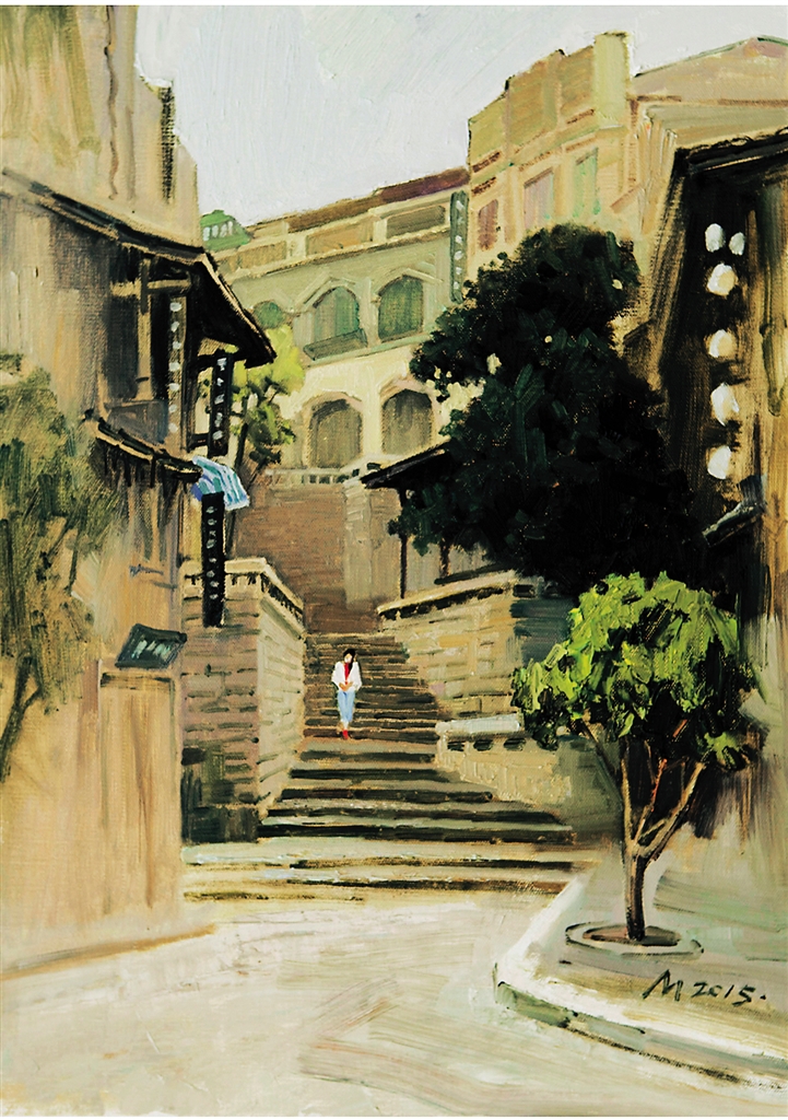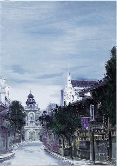 透过油画家笔下骑楼老街,我们不仅可以倾听那些激荡人心的南洋故事,更能看到海口的百年变迁——