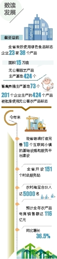 今年来,我省继续打造完善10个互联网小镇的基础设施和服务平台建设;依托淘宝网、京东商城、惠农网等主流电商平台,构建线上线下相结合营销模式,新增农产品电商企业100家,累计达4020家。全省开设151个村级服务站,农村淘宝合伙人达5000名。预计全年农产品电商销售额达116亿元,同比增长36.5%。