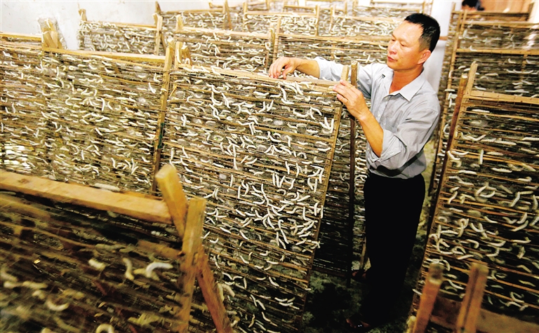 “政府不但扶持种苗、肥料、农药,还发放补贴。今年种桑14亩养蚕,纯收入6万多元。”日前,琼中黎族苗族自治县湾岭镇岭脚村蚕农陈世锦高兴地告诉记者,在桑蚕产业的带动下,岭脚这个远近闻名的贫困村如今已走上致富路。