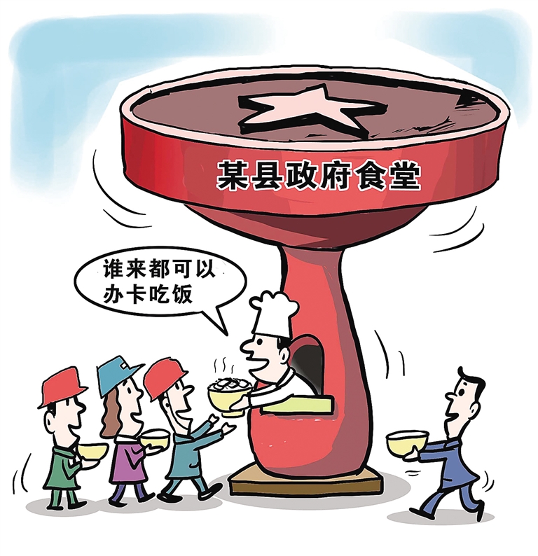 政府食堂,在不少人眼中,是一个神秘的地方,只有政府干部、工作人员才有权进出。而泗阳县政府食堂却对社会无门槛开放,周围的居民、民工都可自由进入,且享受同等价格,这无疑是政府食堂创新管理的一次大胆尝试。且不说这一做法是否符合市场规律、能否行之长远,但就其开放而言,已实属难得,可有效消除民众对政府单位的神秘感和隔膜感,拉近政府与群众的距离,不失为亲民为民之举。这一做法启示我们,政府部门,并非是一个神秘的地方,大可通过更多类似公开、开放的方式,拆除堵在政府与群众之间的高墙,使干群关系更加紧密。这正是: