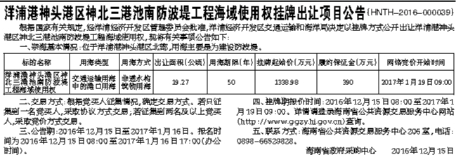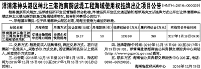 洋浦港神头港区神北三港池南防波堤工程海域使用权挂牌出让项目公告