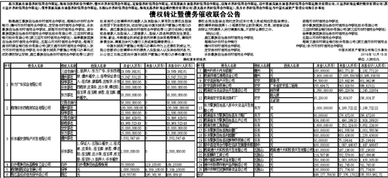海南金城国有资产经营管理有限责任公司债权催收公告