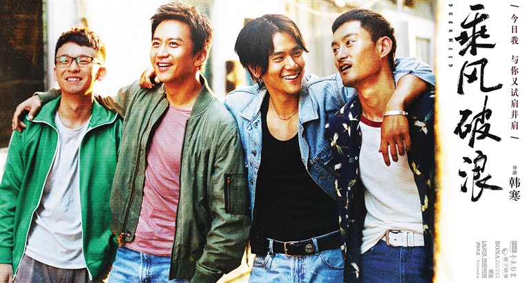 据介绍,继投资参加韩寒首部电影《后会无期》的拍摄之后,博纳影业集团与韩寒再度进行合作,参加了韩寒第二部新片《乘风破浪》的拍摄。《乘风破浪》由著名影星邓超、彭于晏、董子健、赵丽颖领衔主演,高华阳、叫兽易小星、李淳、熊黎、李春嫒等新星助阵。此外,韩寒还邀请了台湾著名表演艺术家金士杰、歌星李荣浩联合主演,令新片星光闪烁,亦堪称阵容强大。