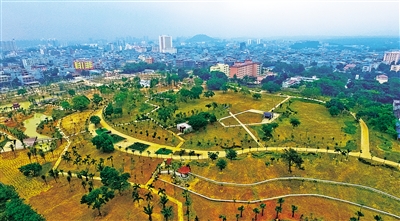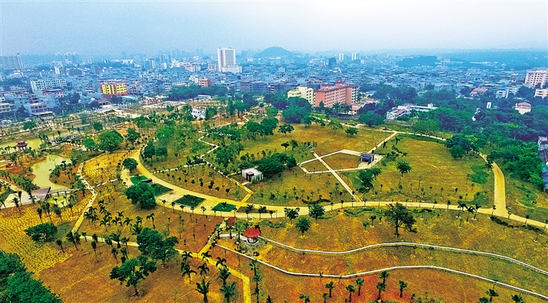南茶公园位于那大城区南部万福西路段,是儋州“十三五”期间规划建设的六大综合性公园之一,总投资5000万元,占地14.68公顷。目前,入口广场、休闲广场、儿童游乐场、停车场、亲水台等工程建设已基本完工,种植景观树约4500多株。本报记者 苏晓杰 摄