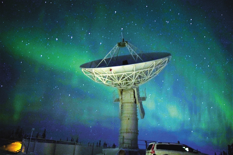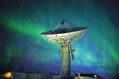 极光下的北极站(11月23日摄)。 记者从中国科学院获悉,历经两年建设,中国遥感卫星地面站北极接收站(简称北极站)于北京时间15日在瑞典基律纳投入试运行。