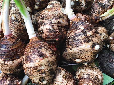 儋州香芋具有开胃生津、消炎镇痛、补气益肾、散积理气、解毒补脾、清热镇咳之药效。芋头为碱性食品,能中和体内积存的酸性物质,调整人体的酸碱平衡,产生美容养颜、乌黑头发的作用,还可用来防治胃酸过多症。芋头中含有多种微量元素,能增强人体的免疫功能,可作为防治癌瘤的常用药膳主食。