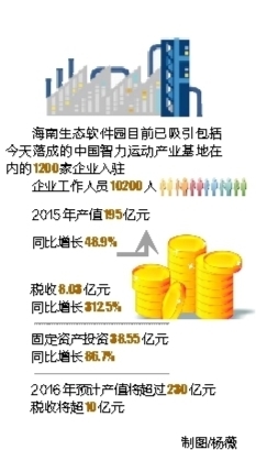 建于2009年的海南生态软件园,在海南省委省政府和澄迈县委县政府的大力支持下,已成为我省互联网产业发展的“龙头园区”,目前已吸引包括今天落成的中国智力运动产业基地在内的1200家企业入驻,企业工作人员10200人,2015年产值195亿元,同比增长48.9%;税收8.03亿元,同比增长312.5%;固定资产投资38.55亿元,同比增长86.7%;2016年预计产值将超过230亿元,税收将超10亿元,是海南“亩产效益论英雄”的典范。