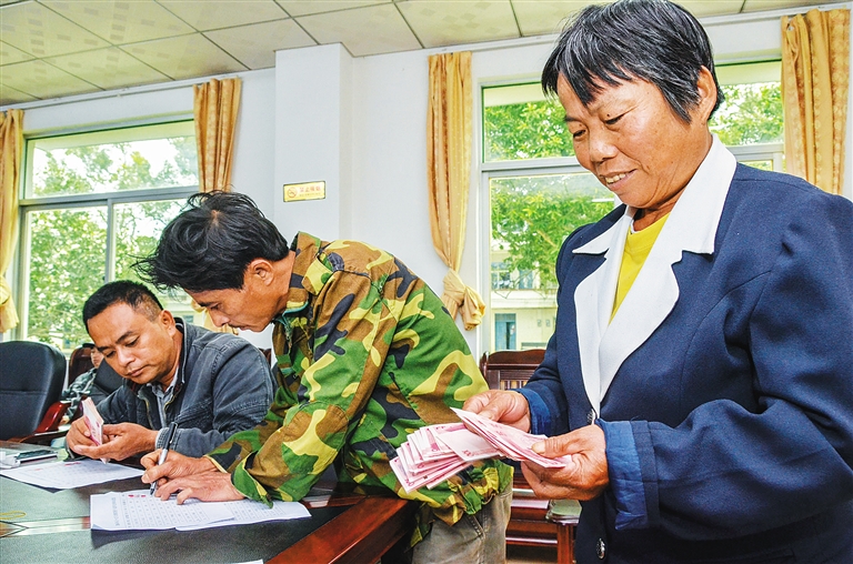 这笔数额不少的分红,对贫困户来说,是一种收益,更是一份生活的保障。吴忠义是这次领到分红最多的贫困户。他家是因病致贫,上有两老,下有两小。在政府帮扶之前,吴忠义夫妻俩靠着打零工养活全家,人均年收入仅2199元。“今年,政府不仅给我送了24头羊、100只鸡、350株胡椒苗,还为我们一家人购买了新农合。”吴忠义说,加上平时打零工,如今他们一家人均年收入已达到了4000多元,实现了脱贫。