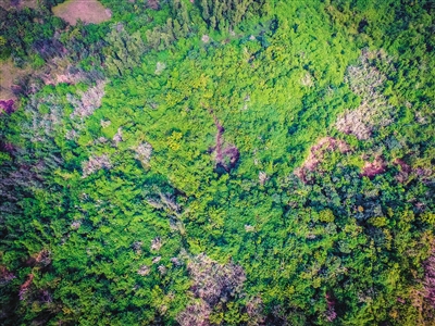 另据了解,这种火山口地貌的“大坑”在琼山区并不止一处。村民称,距离这个火山口北侧500米左右的尚天山上还有一个形状类似的“石坑”,只是直径要小一些。记者通过无人机找到了这个“石坑”,李福观察了拍摄到的画面后表示,“石坑”与火山口外形相似,但因灌木丛密布,无法近距离观察火山岩分布,因此不能确认是否为火山口。李福表示,今年初,他在琼山区新坡镇一处山坡上也发现了一个类似的小型火山口。