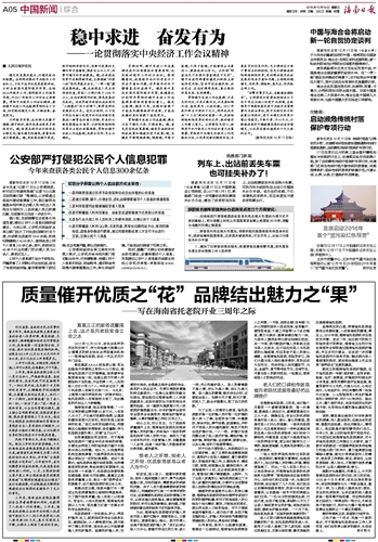 海南日报 中国新闻综合 005 2016-12-181 2016年12月18日 星期日