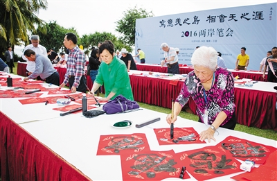 “蘸笔墨染两岸情,天际云端炫彩虹。骑艇佳丽帆影过,海岛美景意无穷。”书法家翟鑫即兴创作一首七言绝句,引得全场喝彩。这次笔会当真是“两岛相依,翰墨情深”。台湾作家季季颇为动容地说道:“文化的力量是如此伟大,它可以穿越时空,将两岸几十年未有联系的人联系在一起,我们要感谢它,得以让人们的感情凝聚在一起。”
