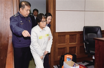 19日当天,戴着黑框眼镜的崔顺实身穿白色囚服现身法庭,否认所有指控。