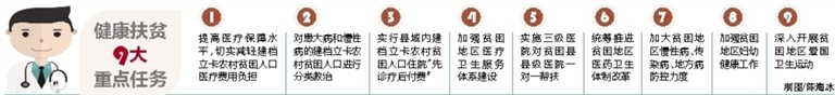 “让贫困的患者有钱看病、有人帮看病,就是现阶段健康扶贫工作的两个目标。”韩英伟介绍说,目前我省已针对贫困患者增加了包括提高门诊5%的报销率、取消起付线、扩大进入医保范围的病种等7条优惠措施,切实保障贫困患者“有钱看病”;在此基础上,我省又制订了贫困病人必须有专人管理、有针对性治疗方案、有取药渠道、落实优惠政策和开辟绿色通道等7条措施,多措并举实现“有人帮看病”,同时建立长效医疗机制,为建档立卡贫困户提供便利医疗。