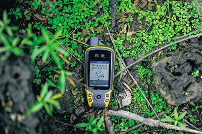 随后,李福用专业GPS定位仪获得了火山口底部的坐标、海拔后发现,火山口底部的海拔只有16米,而且其坐标位置此前并未发现火山口,可以说这里是一处从未被发现的火山口。