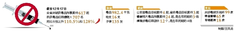 会议要求,要扎扎实实组织实施好“严打”工程。全省各级公安机关特别是禁毒专业队伍要始终坚持“破大案、打团伙、摧网络、抓毒枭、缴毒品、追毒资”的主攻方向,全面提升缉毒破案的攻坚克难能力。确立和侦办一批部督、省督目标案件,打掉一批危害一方的毒枭和职业毒贩,力争抓一个带一串、收一网端一窝。要做到大案、“小案”两手抓,既瞄准大要案件,又要加大打击零包贩毒工作力度,打掉一批从事零包贩毒的坐地户,形成强大震慑。对涉毒娱乐场所要坚决实行“一次性死亡”。