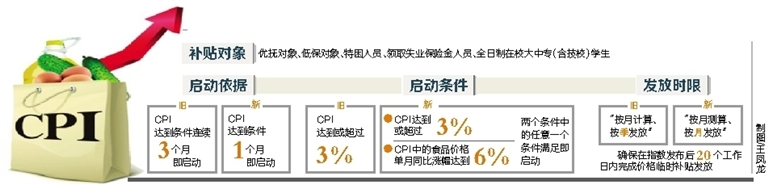 省物价局相关负责人表示,此次新修订的物价联动机制主要亮点有:一是优化启动依据。原来居民消费价格指数(以下简称CPI)达到条件连续3个月才启动,调整为CPI数值达到条件1个月即启动。二是降低启动条件。由原来单一的CPI达到或超过3%,调整为CPI达到或超过3%、CPI中的食品价格单月同比涨幅达到6%,两个条件中的任意一个条件满足即启动。新的物价联动机制启动条件有所降低,尤其是将考量周期从“连续3个月”缩短为“单月”,使机制的灵敏度明显增强,物价联动启动的次数会更多更频繁。三是缩短发放时限。新机制补贴发放工作将过去的“按月计算、按季发放”改为“按月测算、按月发放”。明确达到启动条件的,要在锚定价格指数发布后及时启动联动机制,并确保在指数发布后20个工作日内完成价格临时补贴发放,时效性大幅提高,缩短了发放时限,将使困难群众的获得感明显增强。