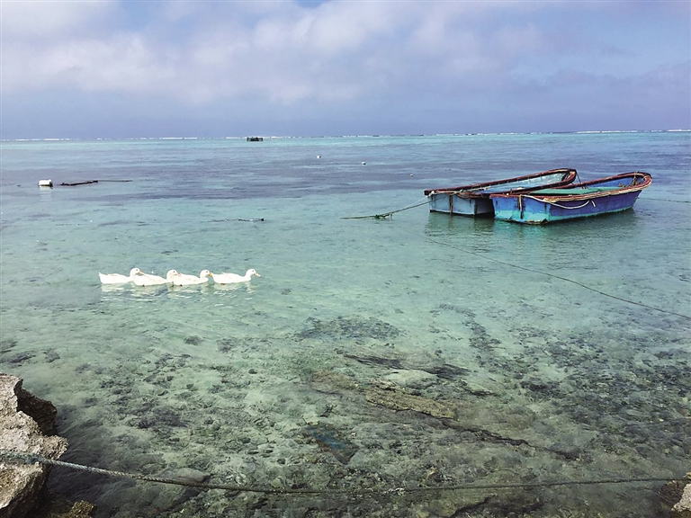 李丽莎在来信中说,这张图片拍摄于今年1月29日。当时自己作为随行工作人员前往赵述岛上慰问,看到在赵述岛的礁盘上,几只海鸭惬意地游荡,不远处的一艘小船静静地停泊在海面上。“瞬间被这幅静谧和谐之美触动到了,就用手机随手拍了下来”。